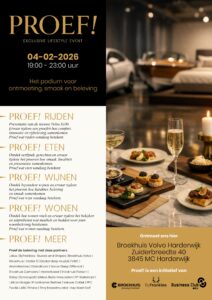 Samen met onze Business Partners Broekhuis Volvo en ByFrankies organiseren we PROEF!: hét Lifestyle event! Ontdek nieuwe trends, leer nieuwe producten en bedrijven kennen, ontmoet nieuwe mensen en ga naar huis met een hoop nieuwe ideeën en inspiratie.